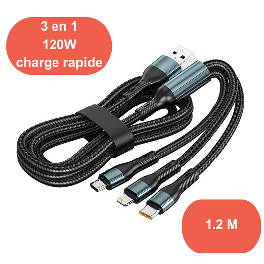 Câble de recharge 3 en 1 rapide Micro USB + Lightning + USB Type C